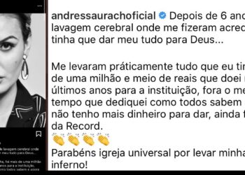 SÃO PAULO | Andressa Urach usou as redes sociais nesta sexta-feira (13) para fazer um desabafo sobre a igreja Universal ...