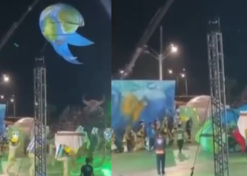 Guindaste despenca com cunhã-poranga em festival no Amazonas; assista