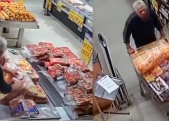 Vídeo: Homem é flagrado tentando furtar 120 kg de carnes em supermercado