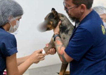 Cachorro tem focinho dil4cer4d0 após g0lpe de terçado e é socorrido em Manaus