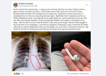 EUA | Na última terça-feira (02), um homem chamado Bradford Gauthier engoliu um dos AirPods, fone de ouvido da Apple, enquanto dormia. ...