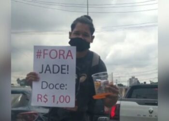 Em Manaus, vendedor conquista clientes no semáforo ao desfilar com placa ‘Fora Jade’