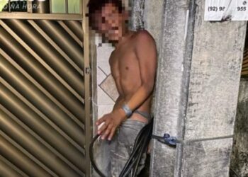 MANAUS - AM | Um jovem, até o momento não identificado, foi amarrado em um poste de iluminação pública no ...