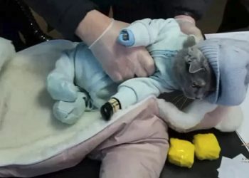 RÚSSIA – Uma mulher tentou se passar por uma mãe em passeio para traficar drogas. Ela vestiu o seu gato ...