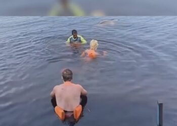 Baixista do Guns N’ Roses faz passeio turístico e nada com botos, em Manaus