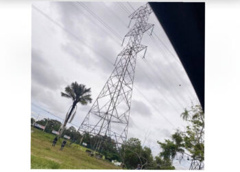 Homem é resgatado pela PM, após se pendurar em torre na avenida das torres