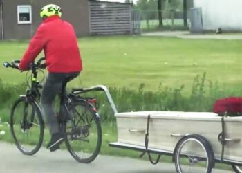 HOLANDA | Um holandês de 69 anos, foi visto dando uma volta de bicicleta, levando um caixão decorado com rosas. ...