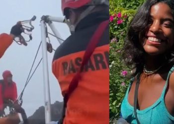 MUNDO - Equipes de resgate confirmaram agora há pouco que a brasileira presa em uma fenda no Monte Rinjani, na ...
