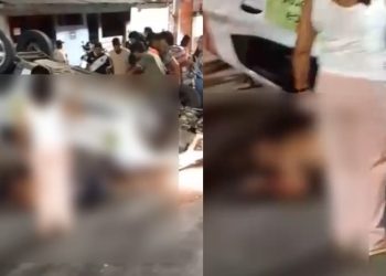Vídeo forte: carro da InDrive capota em Manaus e deixa duas pessoas feridas no asfalto