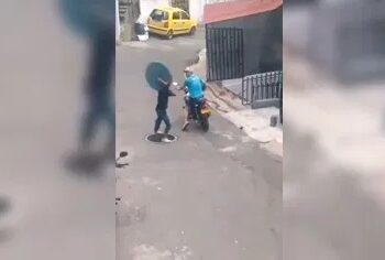Assaltante atrapalhado cai de moto ao tentar roubar celular e foge empurrando o veículo