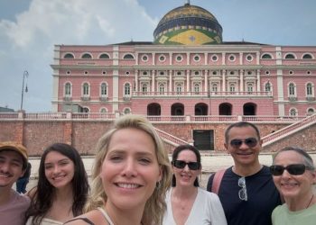 Atriz Letícia Colin se derrete por Manaus diante do Teatro Amazonas: ‘bom demais’