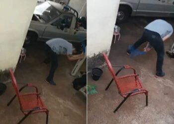 SÃO PAULO | A Polícia Militar de São Paulo prendeu um homem suspeito de bater com uma mangueira de jardim em uma ...