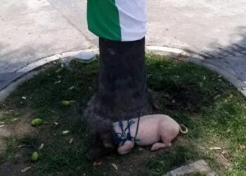 RIO DE JANEIRO | Um porco foi amarrado por uma corda em uma árvore - com a bandeira do Palmeiras ...