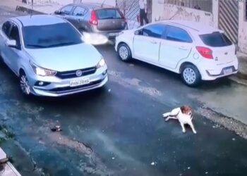 MANAUS - AM | Uma câmera de segurança registrou o momento que um carro atropela um cachorro que estava deitado ...