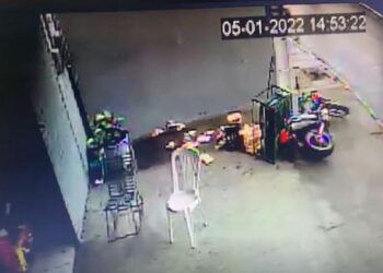 CEARÁ | Uma motocicleta que estava estacionada em uma calçada ligou, andou sozinha e derrubou um carregamento de pães que ...