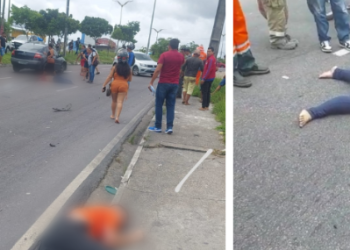 Mulher morre e motociclista fica ferido após grave acidente em Manaus