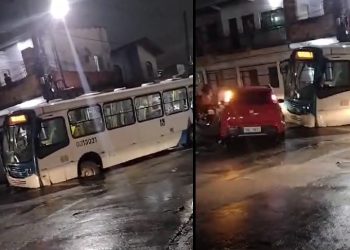 Vídeo: ônibus atola em mais um buraco deixado aberto nas ruas de Manaus