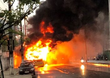 MANAUS - AM | Um ônibus expresso da empresa Global Green pegou fogo na avenida Constantino Nery, no fim da ...