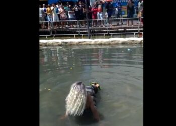 Pabllo mergulha na água suja do Centro de Manaus e viraliza: “Sou a sereia dos alagados”, veja vídeo