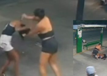 Veja o vídeo da mulher que foi t0rada na f@ca pela amiga na parada de ônibus