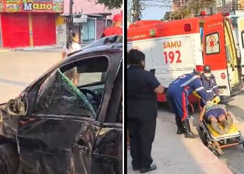 Vídeo: sem cinto e em alta velocidade, motora acerta ônibus e desmaia em Manaus