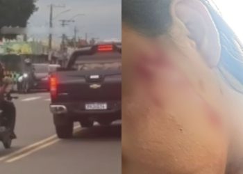 Vídeo: Jovem fica com o rosto ferid0 após motoqueiro jogar pedra em carro no Alvorada
