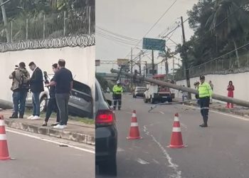 Vídeo: motorista bêbado derruba poste e deixa família sem energia nesta sexta-feira 13 em Manaus