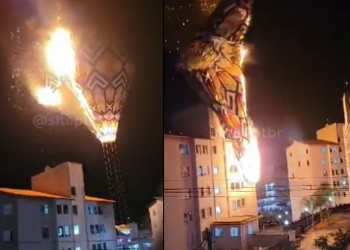 SÃO PAULO - Um balão em chamas caiu em cima de um prédio na região metropolitana de São Paulo, na ...