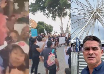 Vídeos: Protesto de professores interrompe inauguração da roda-gigante na Ponta Negra: ‘Fora David’