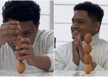 Livro dos recordes! Homem empilha quatro ovos e desafia a gravidade