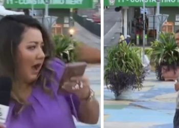 MANAUS - A repórter da Rede Amazônica Naine Carvalho levou um susto dos grandes, ao vivo, ao ser agredida por ...
