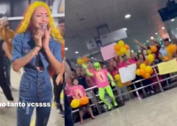 Ruivinha de Marte chora ao ser recebida por multidão no aeroporto de Manaus