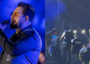 ENTRETENIMENTO - O cantor Marrone, da dupla Bruno & Marrone, sofreu uma queda durante um show realizado no sábado (10), ...