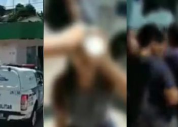 AMAZONAS| Imagens de um Policial Militar ameaçando um grupo de pessoas, após agredir e jogar spray de pimenta no olho ...