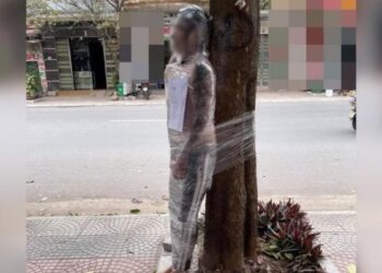 VIETNÃ | Um tatuador decidiu amarrar seu próprio cliente no tronco de uma árvore, usando plástico filme, após este se ...