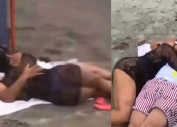 Mulher flagra marido relaxando com a amante na praia: “Aqui é seu trabalho?”; veja o vídeo