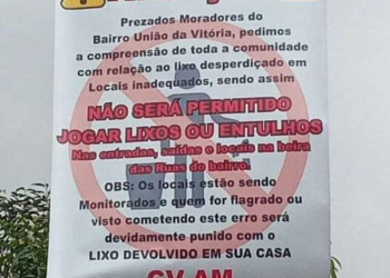 MANAUS (AM) - Um cartaz de proibição para jogar lixo na rua surpreendeu os moradores da comunidade União da Vitória, ...