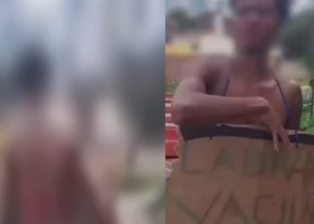 Vídeo: suspeit0 de assalt0 é forçad0 a andar sem r0upa na rua com placa: ‘sou vacilão’