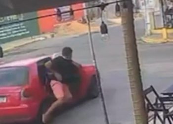 BRASIL - Uma esposa revoltada pegou a amante pelos cabelos dentro do carro do marido nesta segunda-feira (15) na rua ...