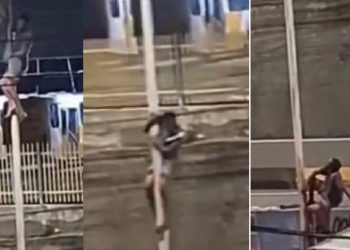 MANAUS - Um homem não identificado foi flagrado subindo no poste nesta terça-feira (7), para furtar fios elétricos e vender ...