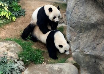 HONG KONG | Um casal de pandas gigantes foi flagrado acasalando pela primeira vez em 10 anos no zoológico Ocean ...