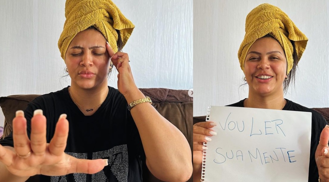 MANAUS – Iris Sales segue tentando engajar, mas tá meio enrolada nesse quesito. De toalha na cabeça nesta sexta-feira (12), tentou brincar de ler mentes por telepatia, mas acabou xingada.
