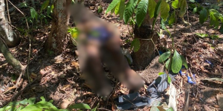 De short, e com uma corda no pescoço, o corpo tem tatuagem no antebraço escrito ‘vá em paz’. Moradores ligaram para a PM e avisaram sobre o cadáver.