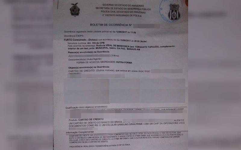No dia seguinte ao furto, a vítima solicitou extrato de um dos seus cartões de crédito e percebeu que havia sido realizada uma compra no valor de R$ 3.809,92 em uma loja de autopeças. Outras compras foram realizadas em vários postos de gasolina da cidade. O mecânico cancelou todos os cartões, e registrou o fato no 2° Distrito Integrado de Polícia (DIP).