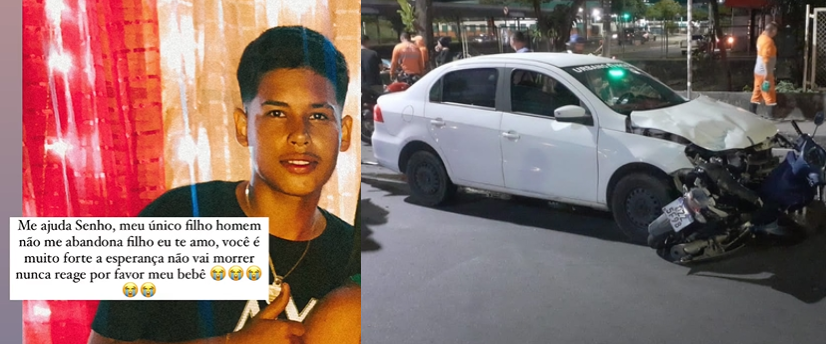 O amigo dele, Erick Júnior, de 17 anos, morreu na hora. Os dois estavam na moto fazendo delivery quando foram atingidos por um carro de aplicativo, modelo Voyage, na saída da Cosme Ferreira entrando na Beira Mar.