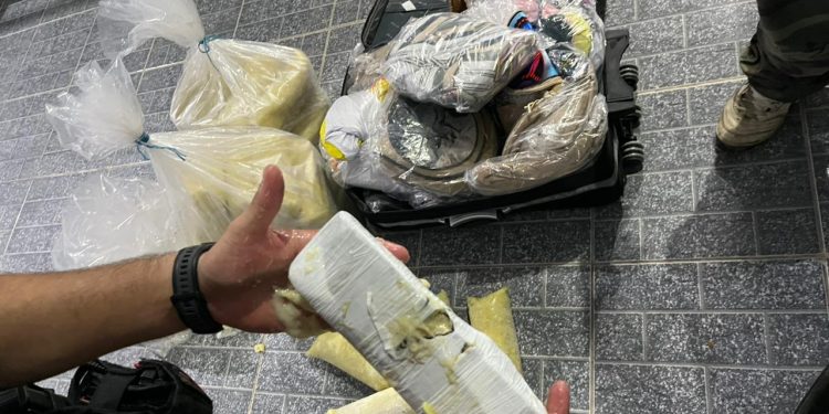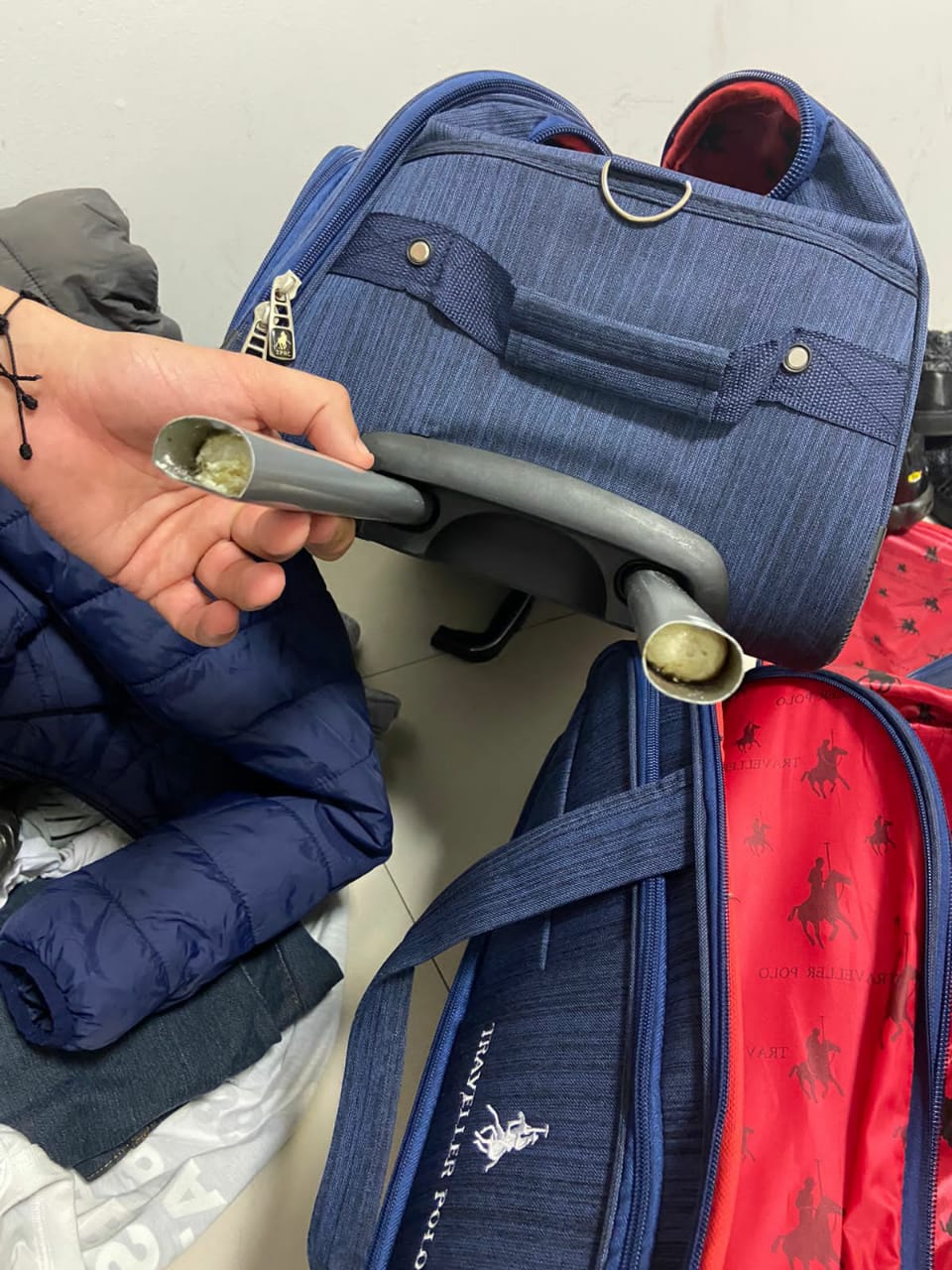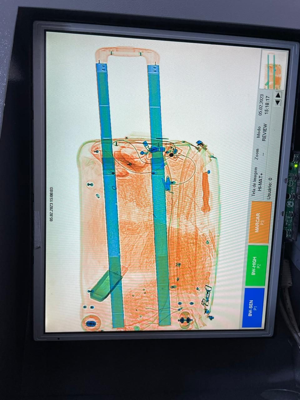 De acordo com a PF, durante fiscalização de rotina pela equipe do GEPOM, as roupas na mala da jovem levantaram suspeitas.
