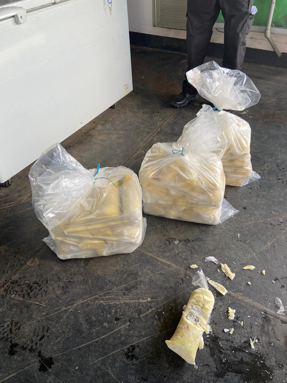 Ainda na terça, durante fiscalização de rotina no Rio Solimões, próximo a Comunidade de Teresina III, apreendeu 2,265 kg de cocaína, que estava fracionada em embalagens de polpa de cupuaçu, acondicionada no freezer da embarcação. A droga estava sob posse de um homem, de 22 anos.