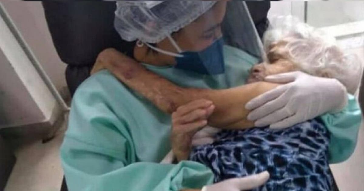 A foto viral foi tirada por um colega de trabalho e após recebê-la, decidiu postar em suas redes sociais. Na imagem, ela acalentava uma das suas pacientes, como faz diariamente, deixando os internautas com o coração quentinho com a atitude do bem.
