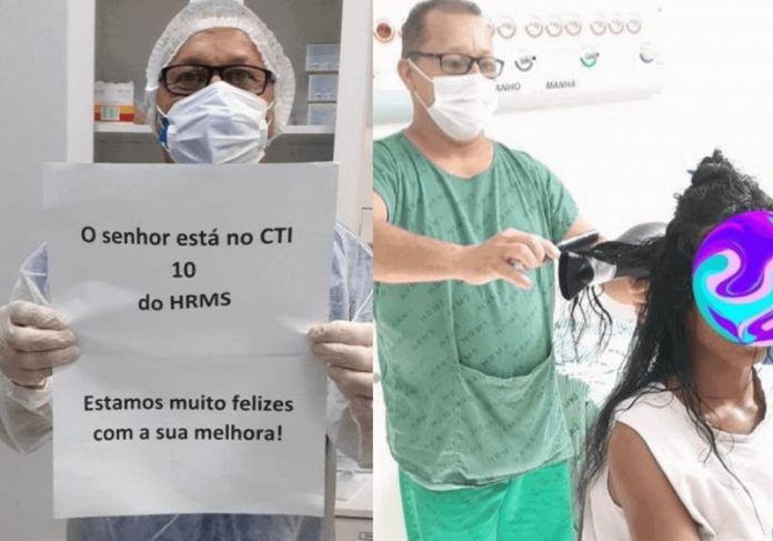 O técnico de enfermagem faz o chamado atendimento humanizado para internados em uma Unidade de Tratamento Intensivo (UTI) do HRMS, no Mato Grosso do Sul e se sente realizado ao ver o resultado desse carinho. As imagens dele ajudando os pacientes, foram compartilhadas pelos próprios colegas.