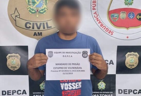São Gabriel da Cachoeira – Um mandado de prisão preventiva foi cumprido ontem (12) ao prender um homem de 29 anos acusado de estuprar a sobrinha de 10 anos. O caso aconteceu no município de São Gabriel da Cachoeira (distante 852 quilômetros em linha reta de Manaus).